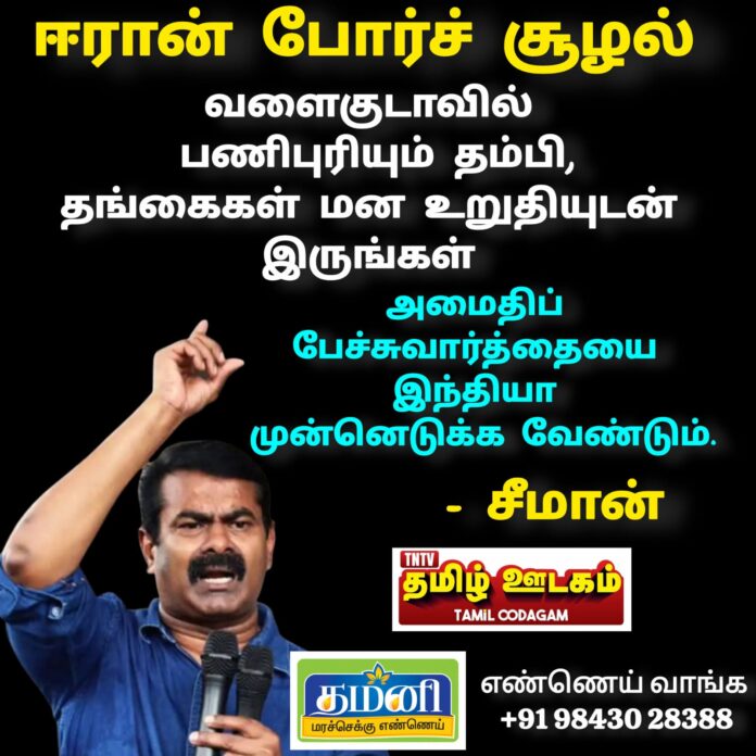 ஈரான் போர்ச்சூழல் ; அமைதிக்கான பேச்சுவார்த்தையை இந்தியா முன்னெடுக்க சீமான் வேண்டுகோள் !