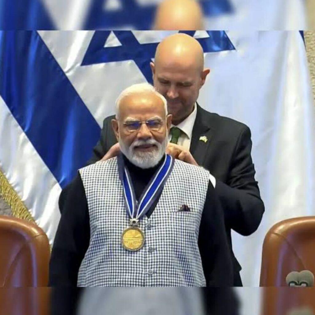 இஸ்ரேல் நாடாளுமன்றத்தின் மிக உயரிய விருதான “கன்னசெட் உரையாளர்” விருது நரேந்திர மோடிக்கு வழங்கப்பட்டது.
