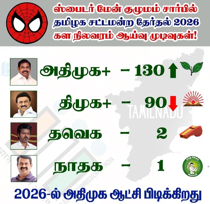 2026 சட்டமன்றத் தேர்தலில் 121 முதல் 130 இடங்களில் அதிமுக வெற்றி பெறும் : மூத்த பத்திரிகை ஊடகவியலாளர் அமைப்புகள் நடத்திய கருத்துக்கணிப்பு