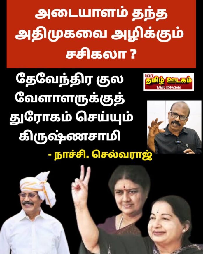 மொத்தத்தில் தன்னை வளர்த்து ஆளாக்கிய, தான் வாழ்ந்து அனுபவித்த அதிமுக என்ற அடையாளத்தை முற்றாக அழிக்க நினைக்கிறார் சசிகலா என்பது மட்டும் வெட்ட வெளிச்சமாகத் தெரிகிறது.