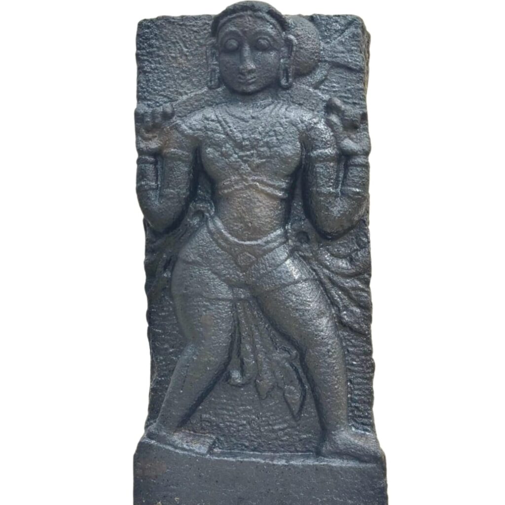 ஆடைஅணி அலங்காரங்களுடன் உள்ள ஒரு பெண்மணி(திருநங்கை) தன்தலையை தானே அறுத்துக் கொள்வது போன்று இச்சிற்பம் வடிக்கப்பட்டுள்ளது.இவ்வகைச் சிற்பங்களுக்கு நவகண்டச் சிற்பங்கள் அல்லது தற்பலிச் சிற்பங்கள் என்பது பெயர்.